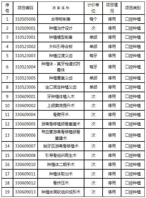 附件:1.济南市停用口腔种植医疗服务价格项目