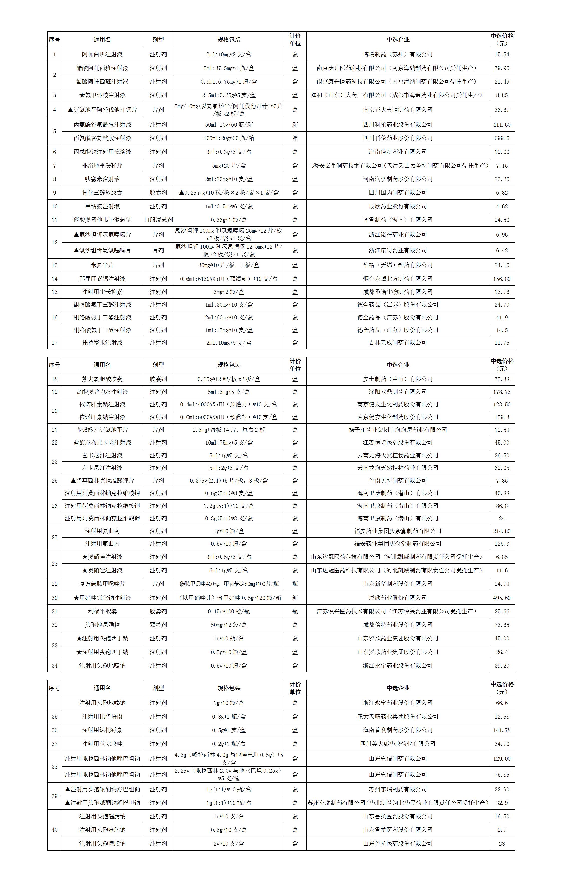 附件:1.全国药品集中采购(山东)中选产品供应清单