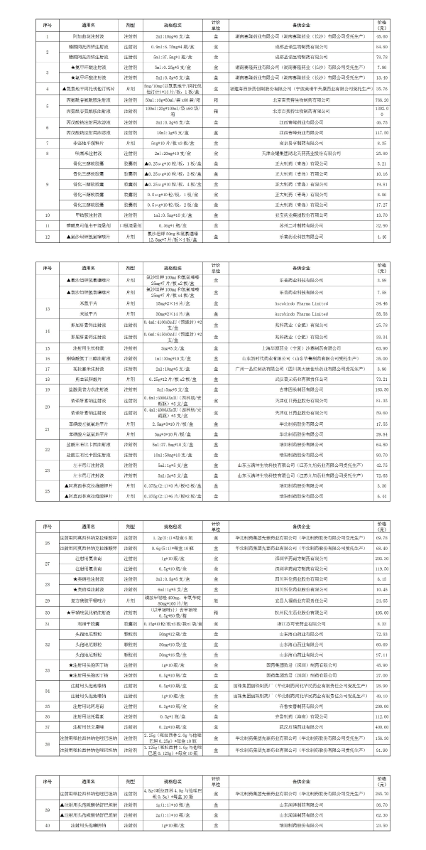 全国药品集中采购(山东)第二备供产品供应清单
