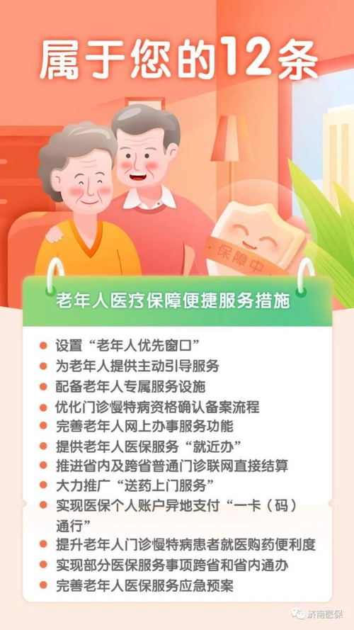【一图读懂】《关于印发济南市医疗保障局贯彻落实老年人医疗保障便捷服务十二条措施实施方案的通知》政策解读