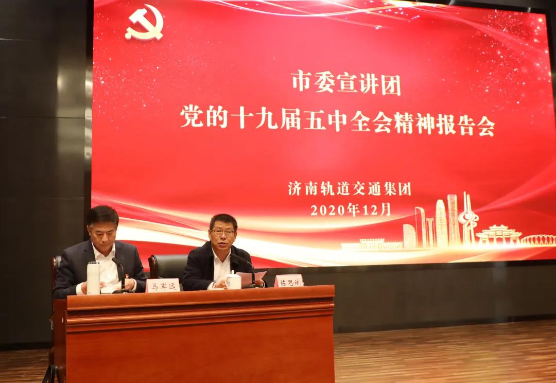 为深入学习宣传贯彻党的十九届五中全会精神,按照市委统一部署,12月10日下午,市委宣讲团党的十九届五中全会精神报告会在济南轨道交通集团举行。市委宣讲团成员、济南社会科学院党组书记、院长马军远作宣讲报告。