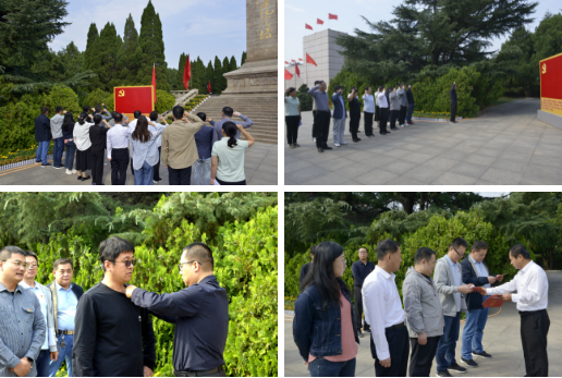 在革命烈士纪念塔前,第二党支部为新发展党员举行佩戴党员徽章仪式,由支部书记赵森为预备党员冯学卿庄严佩戴徽章,并进行入党宣誓。全体党员面向党旗,重温入党誓词,不忘初心、牢记使命,接受思想的淬炼和精神的洗礼。院党组书记、院长付道磊向部分党员颁发了“政治生日”贺卡。在缅怀堂内,全体党员怀着无比崇敬的心情向革命先烈深深鞠躬,表达对革命烈士最崇高的敬意和最深切的缅怀。
