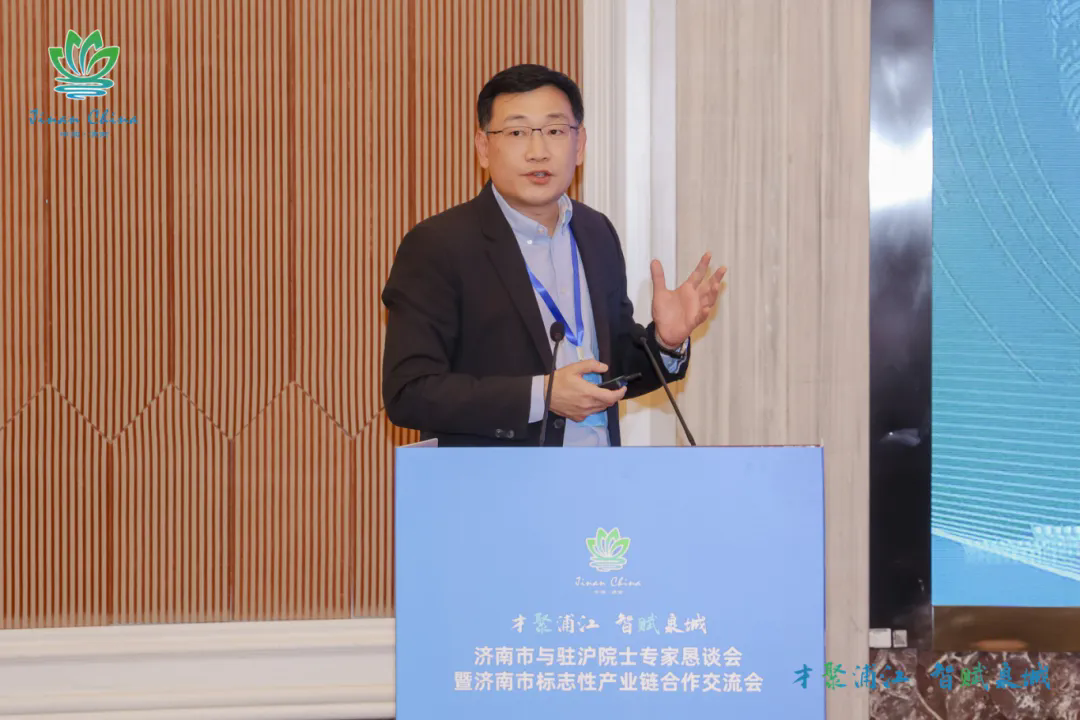 11月4日下午,借助第八届中国国际进口博览会的召开,“才聚浦江 智赋泉城”济南市与驻沪院士专家恳谈会暨济南市标志性产业链合作交流会在沪成功举办。会上,济南国际医学中心管委会主任张济专题推介了济南在生物医药与大健康产业方面的合作机遇。