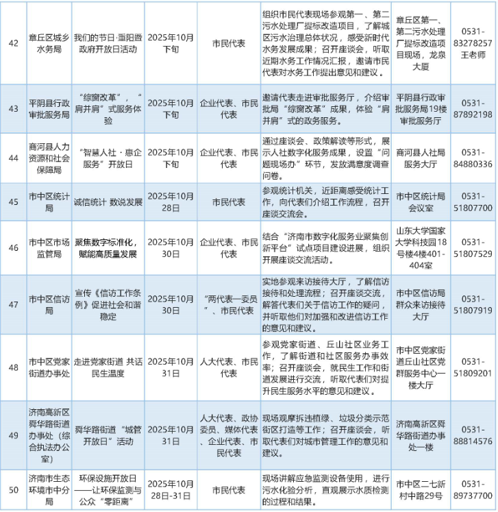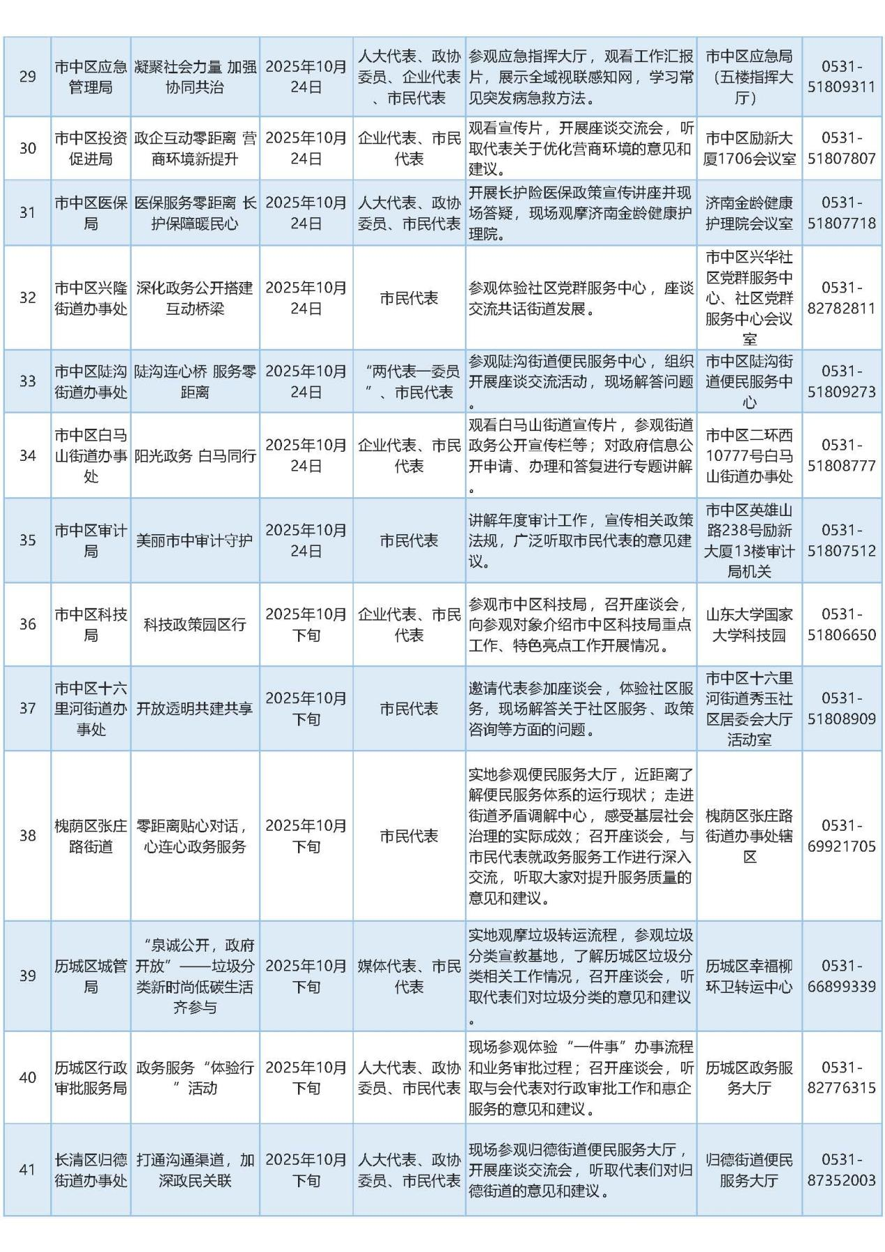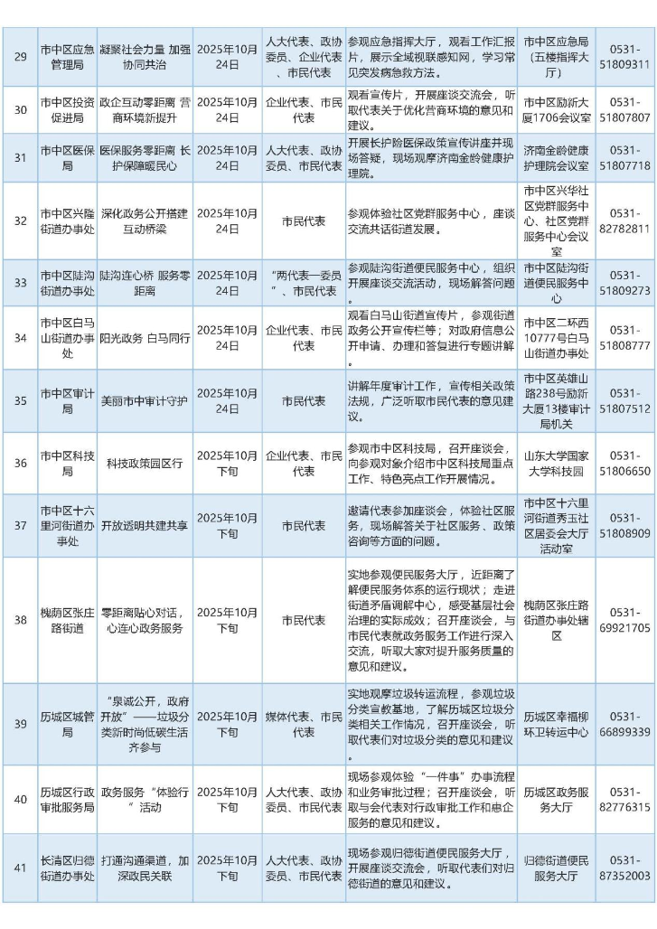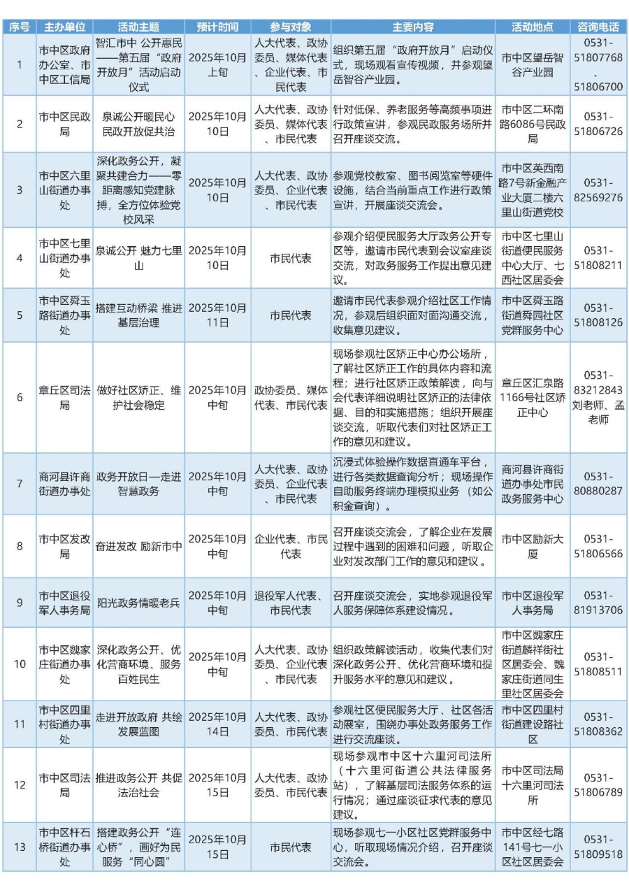 济南市2025年10月将举办“泉诚公开 政府开放”系列活动,涵盖政务服务、社会民生、书香文化、生态环保、科技创新等领域,欢迎您来参加。