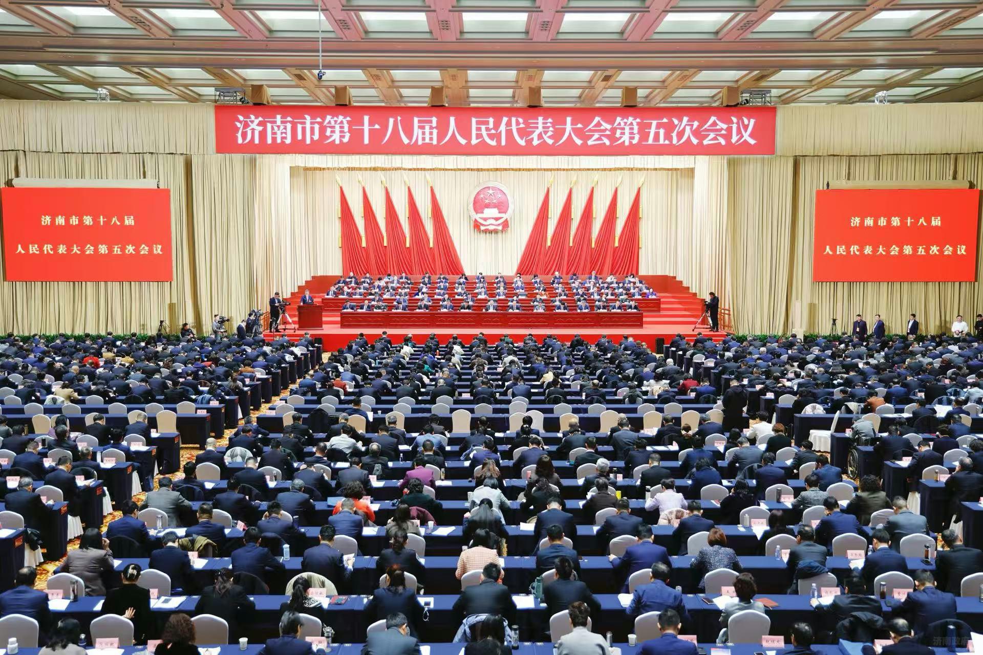 济南市第十八届人民代表大会第五次会议应出席代表573人,实到代表525人,出席人数符合法定人数。