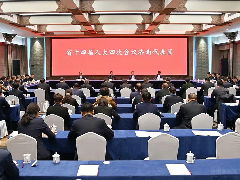 省十四届人大四次会议济南代表团现有代表77名,实到75名。与会代表集体审议了省十四届人大四次会议主席团和秘书长名单(草案)、大会议程(草案)。