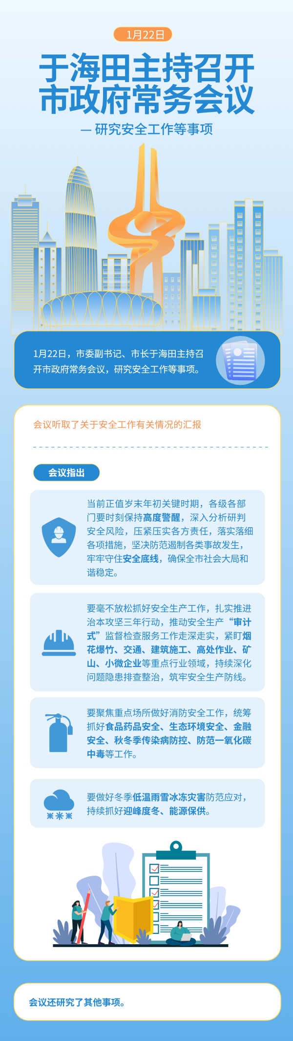 1月22日,市委副书记、市长于海田主持召开市政府常务会议,研究安全工作等事项。