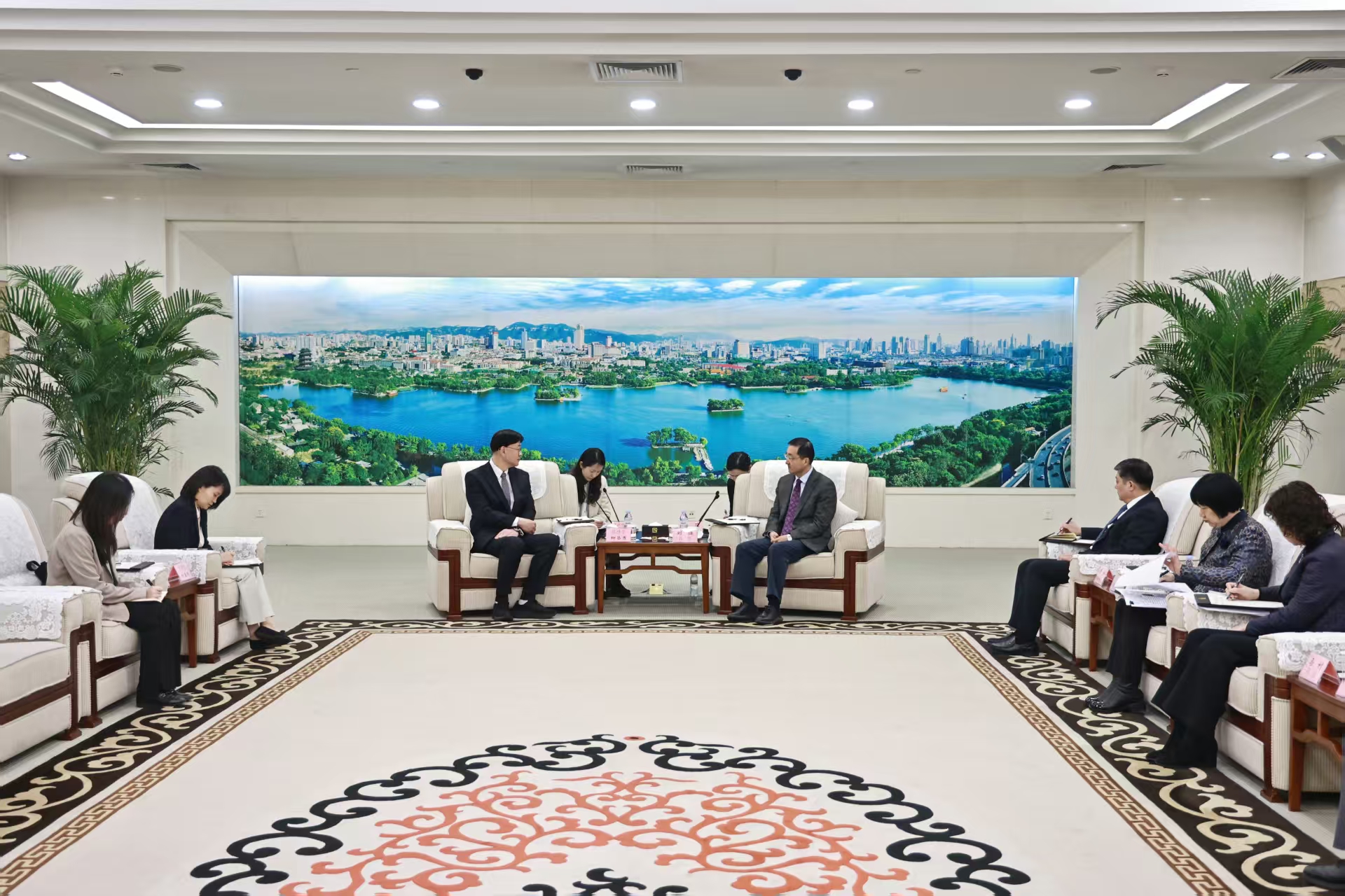3月19日,市委书记刘强在龙奥大厦会见了韩国驻青岛总领事柳昌秀一行。 刘强向客人简要介绍了济南市经济社会发展情况。他说,济南历史文化底蕴深厚,具有“山泉湖河城”浑然一体的独特自然禀赋。“十四五”期间,济南经济运行持续向好,人口规模不断扩大,城市能级不断跃升。面向“十五五”,济南将围绕打造北方先进制造业基地、北方商贸物流中心、区域性科技创新高地的核心功能定位,加速科技创新与开放合作,希望双方加强交流互鉴,在经贸、教育、文化、生物医药、科技创新、人工智能、青少年交流等领域进一步拓展合作空间。 柳昌秀表示,济南是一个美丽的城市,经济发展势头良好,未来合作空间广阔。韩国驻青岛总领事馆将积极发挥桥梁纽带作用,深入推进双方在教育、文旅、医疗、人工智能等领域交流合作,不断深化互信、增进友谊,推动取得更大合作成效。 市委常委、秘书长韩伟参加会见。 |