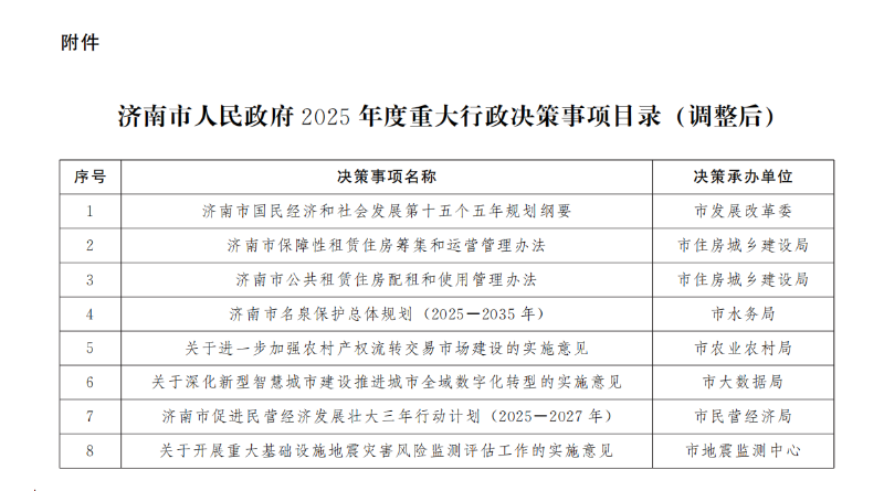 附件:济南市人民政府2025年度重大行政决策事项目录(调整后)
