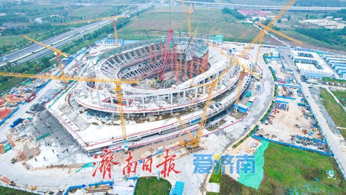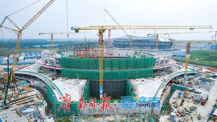 黄河畔 “文体巨构” 加速成型 济南黄河体育中心体育馆全面转入钢结构施工