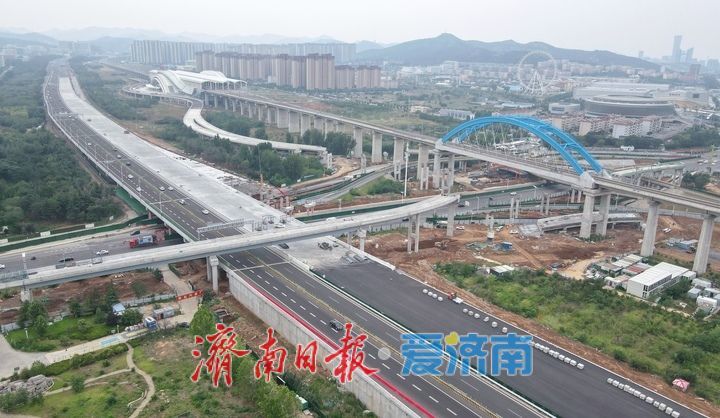 6月20日,在济南绕城高速公路小许家至港沟段改扩建工程项目建设现场,邢村立交西侧新建桥体全部浇筑完成后,开始从经十路北侧对路面摊铺沥青层,经十路南侧的在建匝道显现雏形。