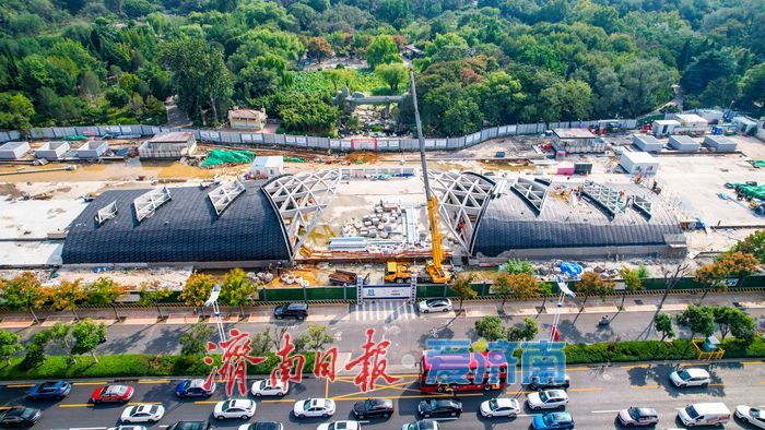 10月1日,济南轨道交通4号线泉城公园站建设取得重大进展,施工人员正紧张进行地上站厅顶的防水施工,标志着这一标志性车站即将全面完工。