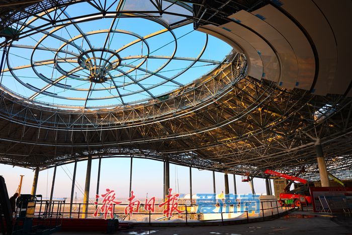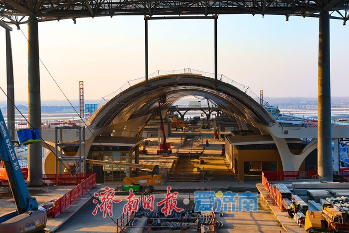 T2航站楼于2023年11月开工建设,主楼5个作业区域及6个指廊协同稳步推进。项目建成后,济南机场飞行区升至4F级,满足年旅客吞吐量5500万人次、货邮吞吐量52万吨的保障需求,总机位达211个,实现“空、铁、轨、陆”无缝化衔接,成为“国内领先、国际一流”的现代化综合交通枢纽。