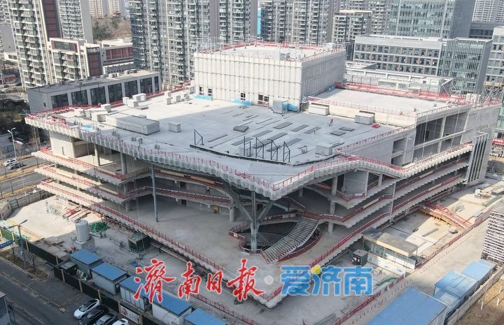2月24日,在济南中央商务区礼士路北侧,华润艺术剧院(工程名)项目建筑主体已完工并通过验收,室内舞台区域钢构完成,幕墙设计样板确认完成,屋面塔台幕墙龙骨施工80%。