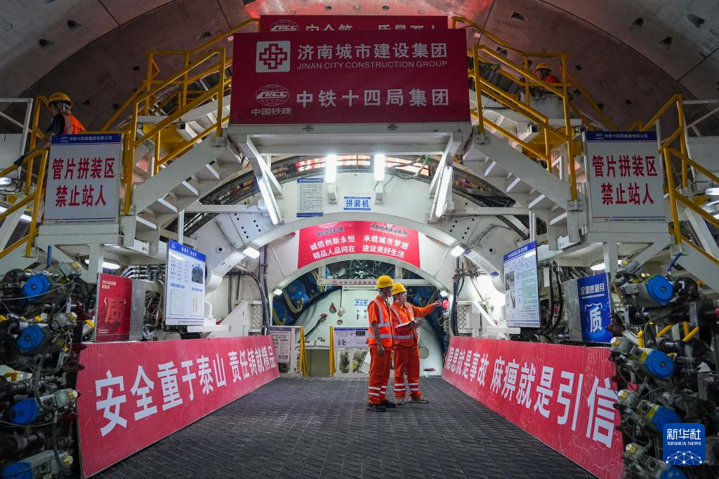 10月19日,中铁十四局工程人员在济南航天大道黄河隧道南线盾构段作业。