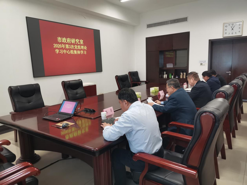近日,市政府研究室党组理论学习中心组进行2026年第3次(扩大)集体学习,专题学习习近平法治思想,研究贯彻落实具体措施。市政府副秘书长,研究室党组书记、主任石玮主持会议并讲话。市政府研究室班子成员、各处室负责人参加会议。