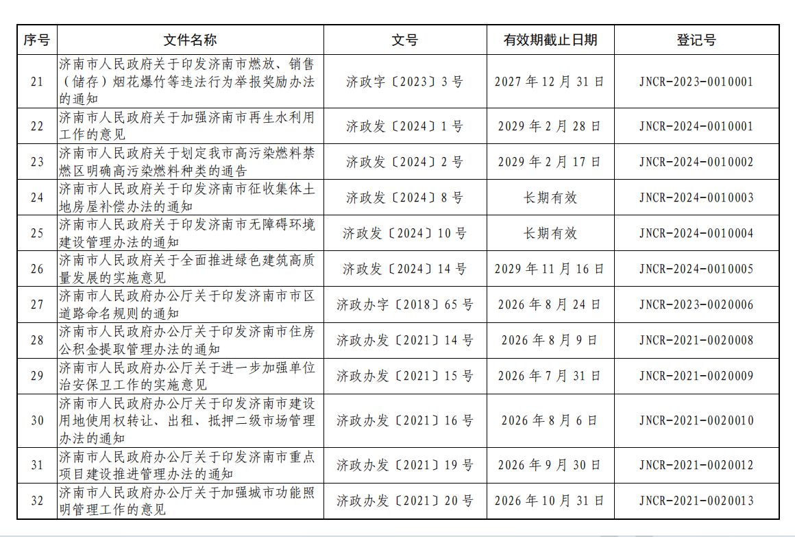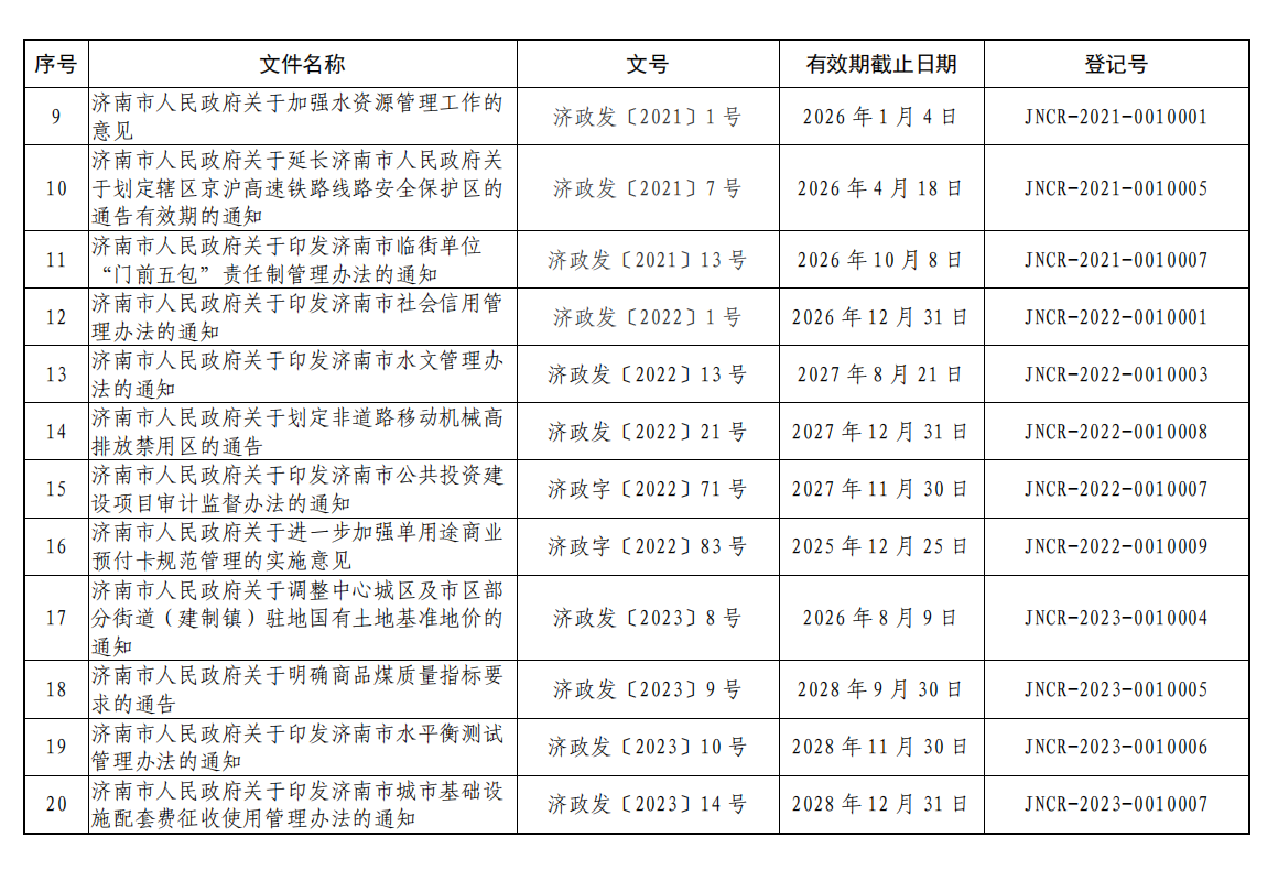 为加强行政规范性文件管理,深入推进依法行政,根据《山东省行政规范性文件制定和监督管理办法》(省政府令第353号)等有关规定,市政府对2024年12月31日前以市政府及其办公厅名义印发的现行行政规范性文件进行了评估、清理。现将清理结果公布如下: