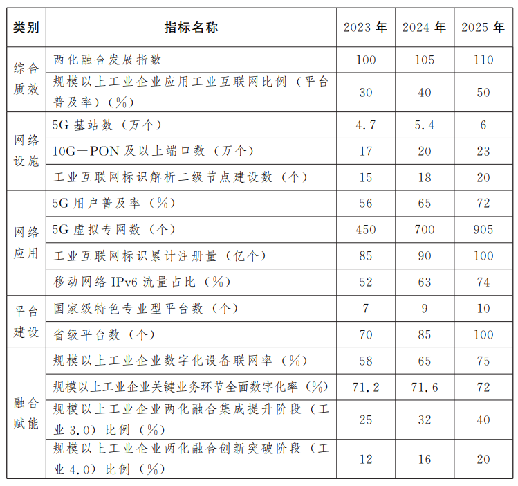 (二)工作目标。力争到2025年,工业互联网新型基础设施量质齐升、平台体系建设不断完善、融合应用创新成效凸显、产业生态体系进一步健全、安全保障支撑更加有力,全面建成国内领先的工业互联网创新发展示范高地。