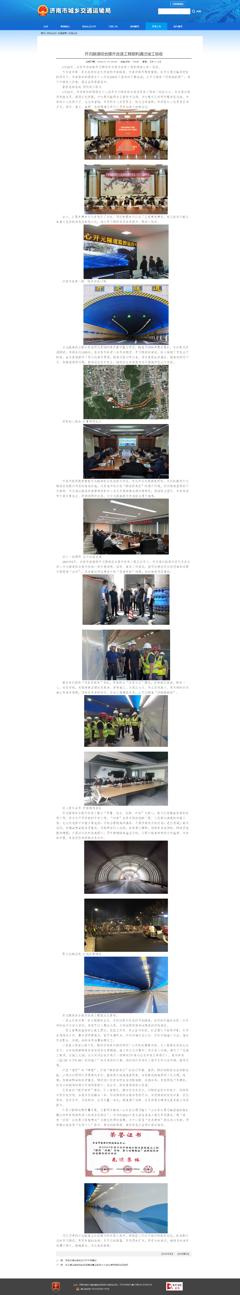 【竣工有关信息】济南市旅游路开元隧道综合提升改造工程项目竣工有关信息 发布日期:2024-02-18 15:56 信息来源:济南市道路和桥隧服务中心 浏览次数:次 字体:【 默认 大 超大 】 开元隧道综合提升改造工程顺利通过竣工验收(http://jnjtj.jinan.gov.cn/col15131/art/2024/art_15131_4774829.html) 【打印本页】 【关闭窗口】