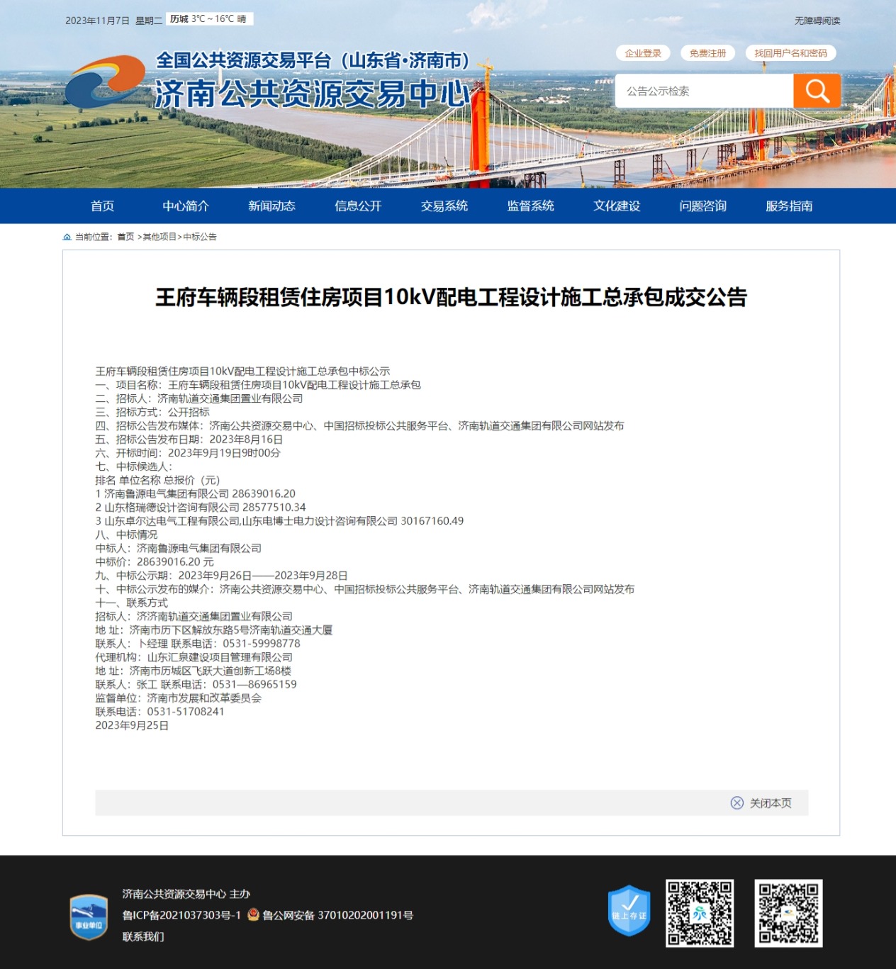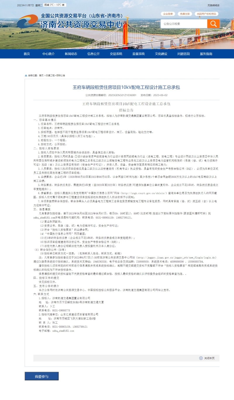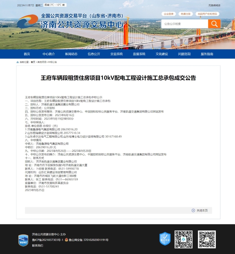 【招标投标信息】王府车辆段租赁住房项目招标投标信息(配电总包) 发布日期:2023-12-01 16:49 信息来源:济南市人民政府办公厅 浏览次数:次 字体:【 默认 大 超大 】 【打印本页】 【关闭窗口】