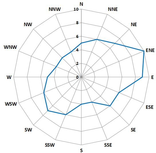 风 年平均风速2.1米/秒,最多风向为东东北(ENE),次多风向为东风(E)。