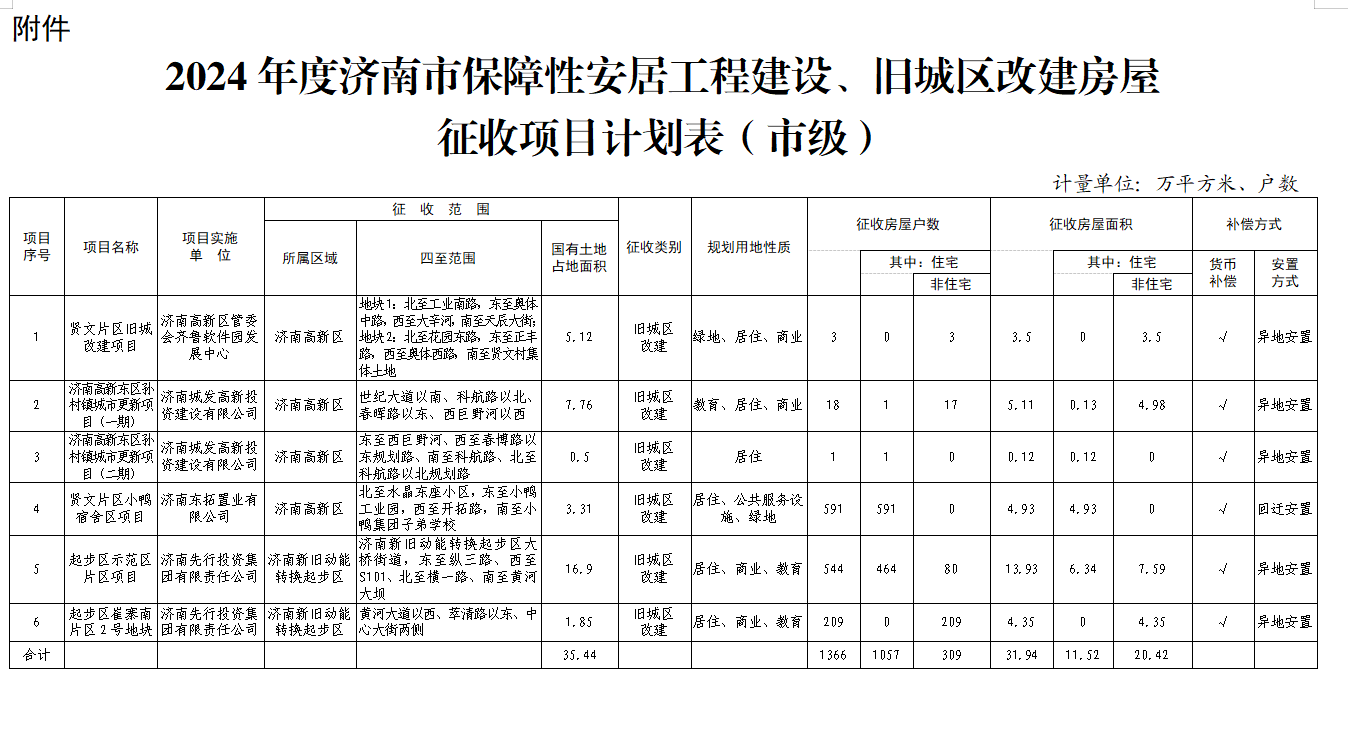 附件:2024年度济南市保障性安居工程建设、旧城区改建房屋征收项目计划表(市级)
