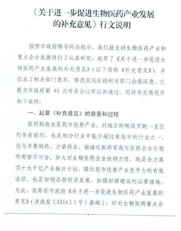 《关于进一步促进生物医药产业发展的补充意见》解读