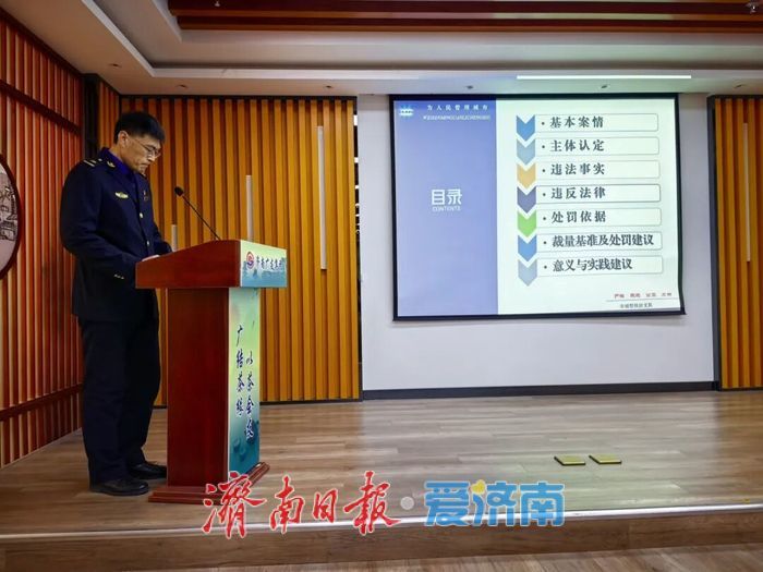 随后召开座谈会。座谈中,济南广友集团党总支副书记、总经理胡巍分享了其“前置审批、过程监管、验收归档”的闭环管理经验;槐荫区城管局介绍了源头压实责任、规范清运流程、数字监管等做法。各方代表积极建言,体现了政府、市场、社会协同发力,共同履行环保责任、参与城市治理的积极态势。济南市城管执法支队党委成员、副支队长郝宝永强调践行“法度、力度、温度”有机统一的执法模式,同时大力推行“721”工作法,通过普法进社区、送策入企业等活动,对轻微违法优先采用教育、劝导等柔性方式,在执法中体现教育挽救初衷,传递城市治理温度。