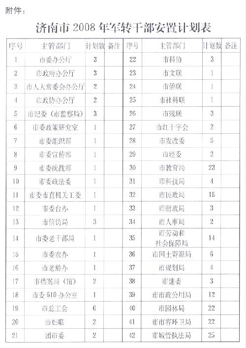 附件:济南市2008年军转干部安置计划表