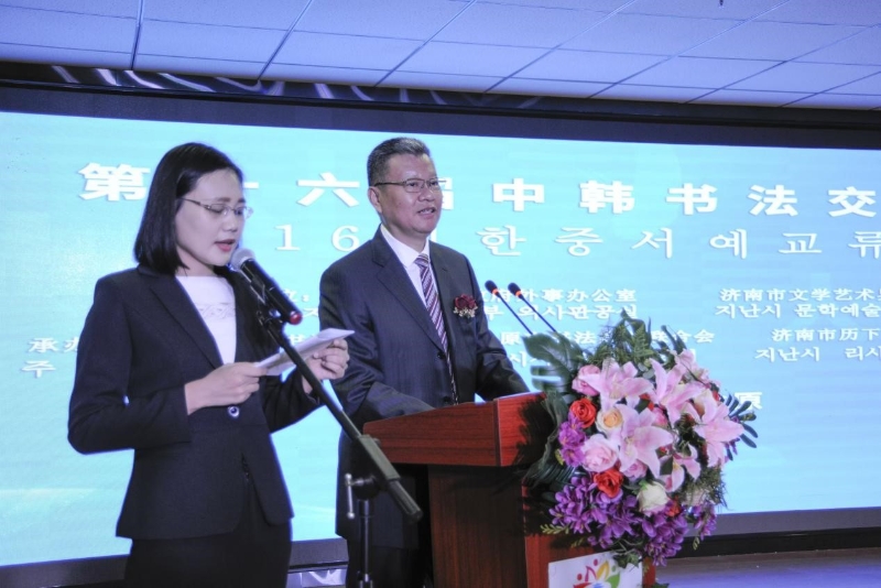 10月24日上午,由济南市人民政府外事办公室、济南市文学艺术界联合会主办,济南市书法家协会、韩国水原市书法家总联合会、济南市历下区文化馆(美术馆)承办的第16届中韩书法交流展在历下区文体档案中心开幕。济南市人大常委会副主任王勤光出席开幕式并讲话,济南市文联党组书记、副主席文东河,济南市外办副主任戚淑斌,济南市文联二级巡视员蒋济东,济南市文联党组成员、副主席刘艳丽,济南市历下区人大常委会副主任王琳,济南市书法家协会主席王升峰以及韩国水原市书法家总联合会会长洪学善率领的文化交流访问团成员等300余人参加活动。 王勤光在致辞中表示,中国济南市与韩国水原市自1993年建立友好城市关系以来,在两市政府和民众的共同推动下,两市合作交流不断深化。第16届中韩书法交流展在济南举办,是济南市和水原市之间又一次重要的文化交流活动。相信通过这次文化交流,中韩两国艺术家相互切磋技艺,必将提高双方的艺术水平,同时增进彼此之间的了解,加深友谊,搭建起两国人民友好往来的文化桥梁,为传播两国优秀文化、促进两友好城市之间的交流合作贡献文艺力量。 洪学善在致辞中表示,书法是汉字文化圈特有的艺术形式,具有悠久的历史和深厚的底蕴。两友好城市书法家通过各自独特的视角和表现形式,展示出东方艺术的独特魅力,希望通过本次交流活动,相互借鉴、互相启发,共同推动书法艺术的继承与发展,推动中韩两国在艺术领域的交流合作。 王升峰在致辞中表示,两市书法家通过深入交流研讨,将展示书法艺术创作的最新成果。本次活动期间不仅安排了作品展示、笔会交流,还将组织座谈互鉴、观摩交流,更深入地了解中韩两国的文化内涵和艺术表达,共同见证书法艺术的魅力。 中韩书法交流展自2003年起,已成功举办了15届,对促进济南市和水原市文化交融和民心相通,加强文化交流发挥了积极作用,已成为两市文化交流发展中一道靓丽的风景线。本次展览共展出两国艺术家书画精品120余幅,作品形式多样、风格各异、技法精湛,充分展示了济南市和水原市书画家的文化底蕴和艺术风采。 |