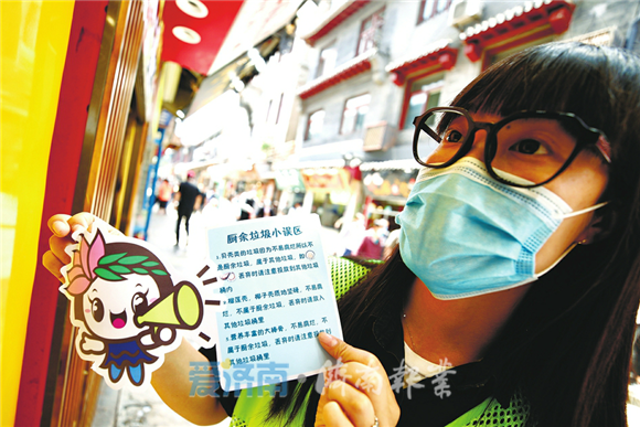 5月19日,志愿者来到芙蓉街,对新入驻的商铺进行“垃圾分类”宣教工作,并在店铺外张贴垃圾分类宣传公益广告,提醒游客注意随时分类丢弃垃圾。芙蓉街的垃圾分类工作已经基本实现全覆盖,商户能够全面掌握正确的投放方法。根据区域特点,历下区泉城路街道以“减量、循环、自治、共治”为理念,建设垃圾分类专业宣教基地、垃圾分类亭,形成厨余垃圾无需外运即可就地减量无害化处理的“闭环”处置试点。