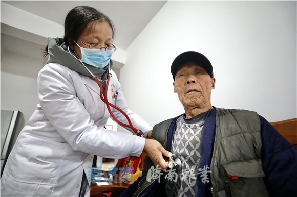 “您今天血压有点高了,按时吃降压药了吗?”商河县白桥镇卫生院家庭医生团队的全科医生于韦韦一边给孙大爷做常规检查,一边询问。88岁的孙大爷因患有高血压、糖尿病等多种慢性病,加上子女不在身边,难受时总是不知所措。于韦韦知道后在一年多前主动与他签订了家庭医生服务协议,平日里上门送医送药,对老人的饮食也很注意,同时经常提醒他要多锻炼。在于韦韦的引导下,孙大爷脸上的笑容越来越多,逢人便说多了个“好闺女”。