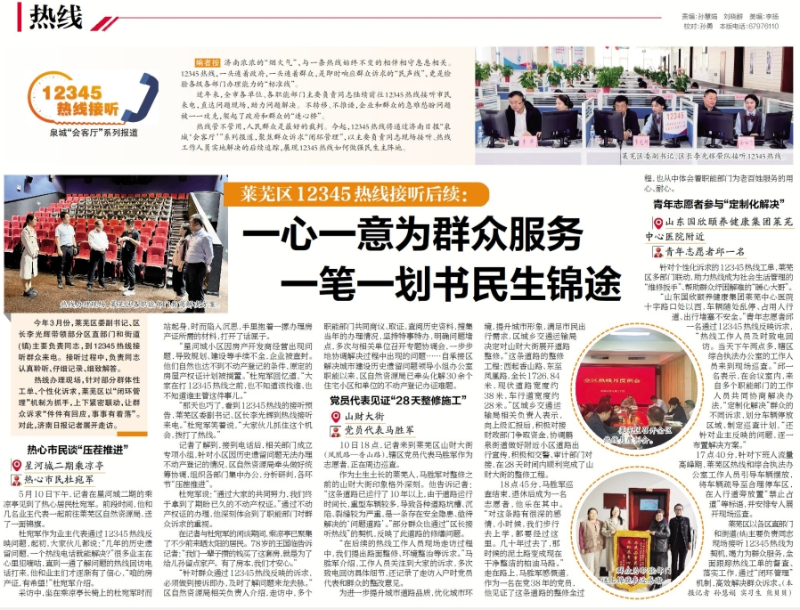 泉城“会客厅”系列报道莱芜区12345热线接听后续:一心一意为群众服务,一笔一划书民生锦途《济南日报》
