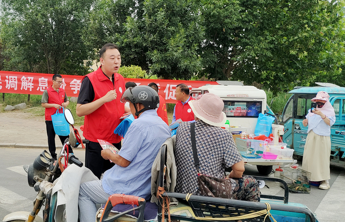 每逢回河大集,回河街道安排司法所、党建办、建委办、热线办、城市执法中队等科室负责人来到集市,邀请部分人民调解员、公益律师现场调解村民纠纷,与来电人见面沟通,现场商讨解决方案,为民排忧解难。