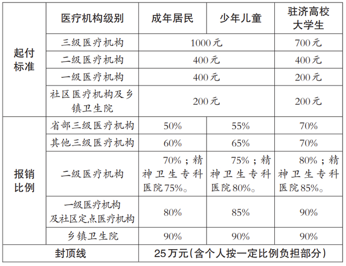 3.中医定点医疗机构起付标准降低20%,精神卫生专科医疗机构无起付标准。