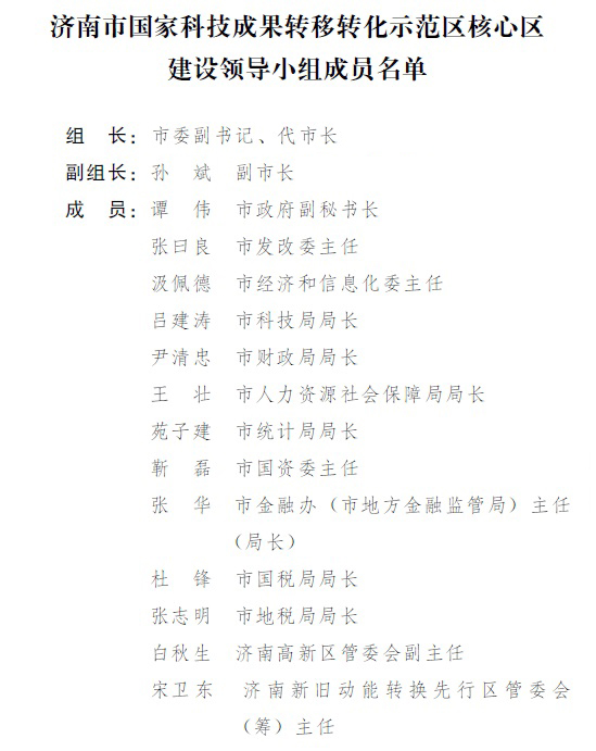 附件:1.济南市国家科技成果转移转化示范区核心区建设领导小组成员名单