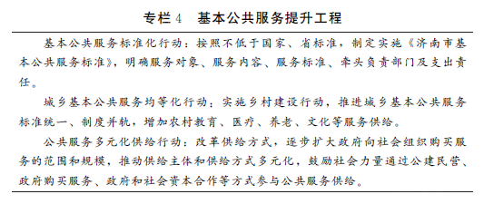 (二)济南都市圈建设将全面提速。国家提出实施现代化都市圈培育工程,《山东省新型城镇化规划(2021-2035年)》提出以济南为中心,辐射带动淄博、泰安、聊城、德州、滨州、东营六市一体发展、协同发展、融合发展。在省会经济圈一体化发展框架下,我市与周边地区同城化发展将大大加快,现代化济南都市圈将加速形成。