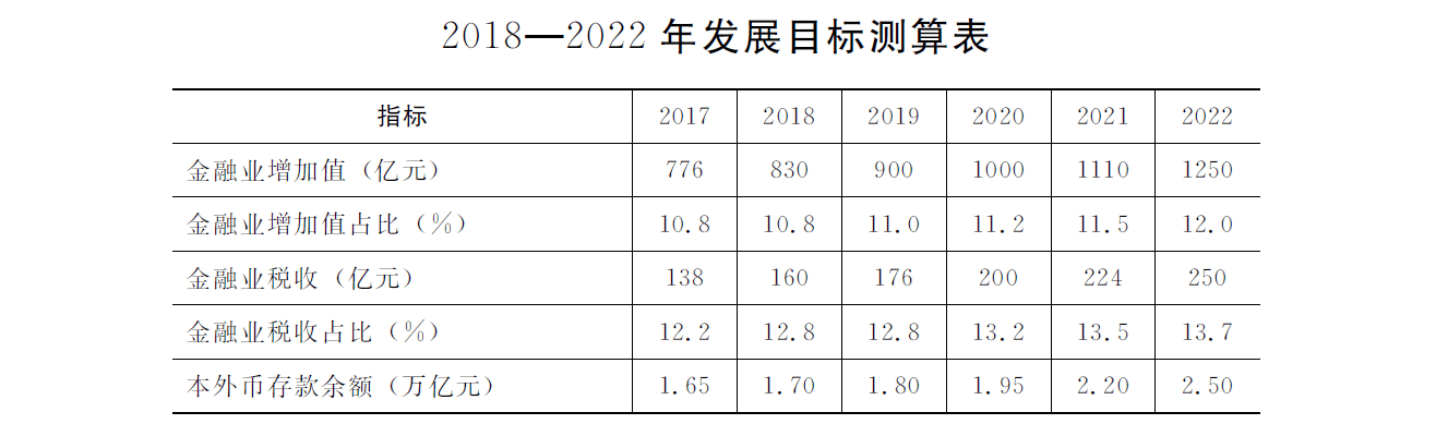 具体目标。集聚海内外高层次、创造性优秀人才,到2022年,金融人才规模与结构更加合理、人才素质大幅提高、国际化特征更为明显、发展环境更具优势,成为全国知名的“人才目的地”。