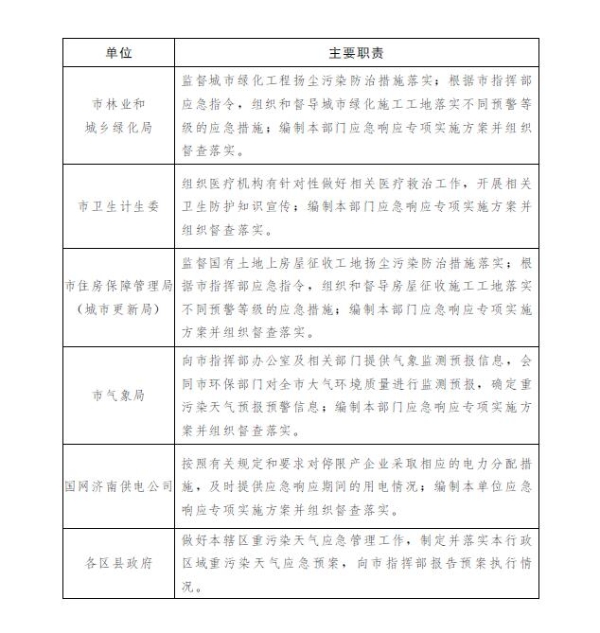 济南警备区:根据地质灾害演进情况,组织民兵预备役人员、协调驻济部队开展抢险救灾、营救群众、物资转移等重大任务;承担其他地质灾害应急抢险任务。