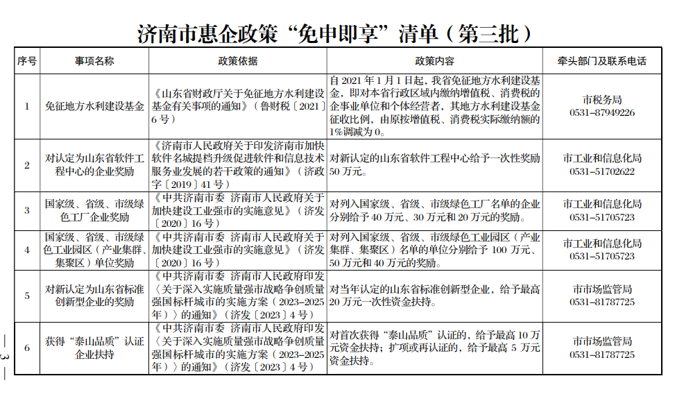 济南市人民政府办公厅关于公布济南市惠企政策“免申即享”清单(第三批)的通知