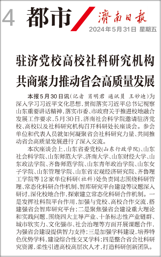 济南日报 驻济党校高校社科研究机构共商聚力推动省会高质量发展