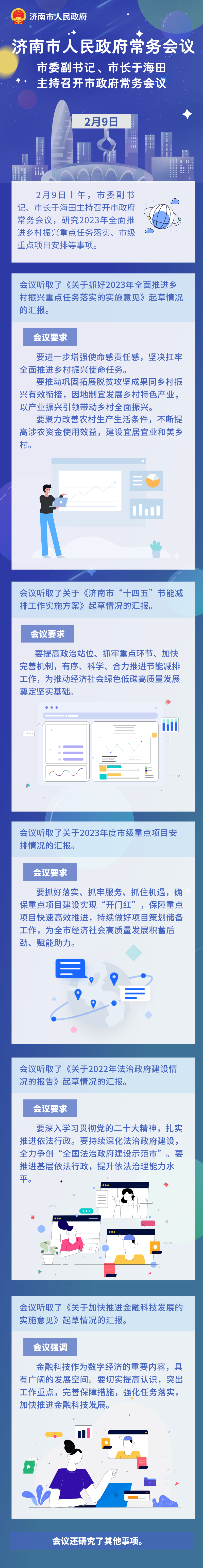 2月9日上午,市委副书记、市长于海田主持召开市政府常务会议,研究2023年全面推进乡村振兴重点任务落实、市级重点项目安排等事项。