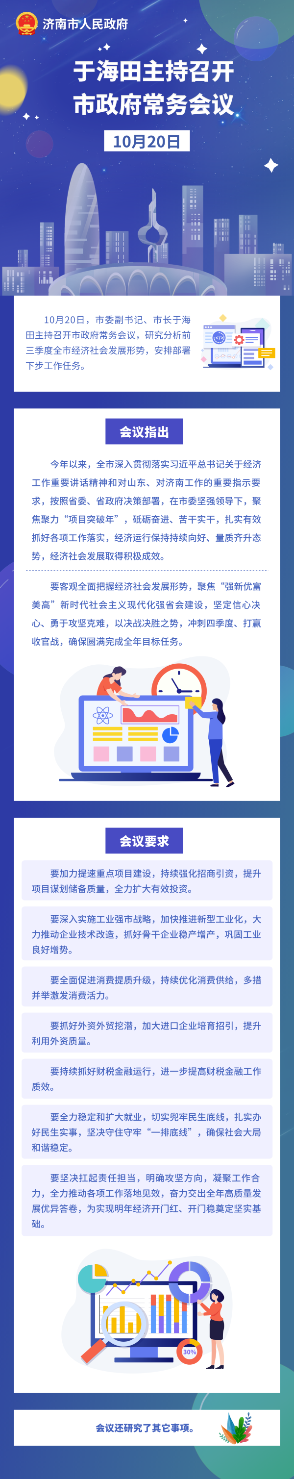 10月20日,市委副书记、市长于海田主持召开市政府常务会议,研究分析前三季度全市经济社会发展形势,安排部署下步工作任务。