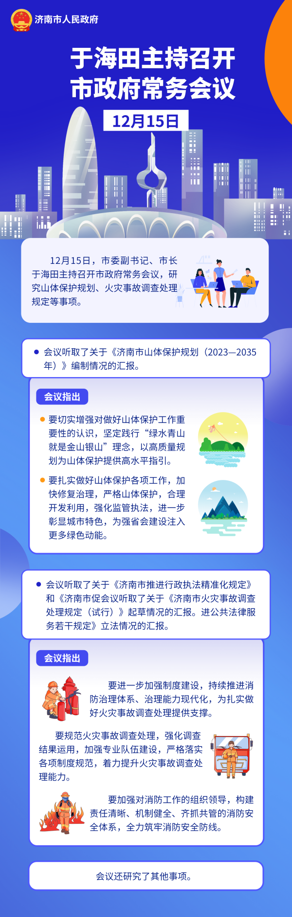 12月15日,市委副书记、市长于海田主持召开市政府常务会议,研究山体保护规划、火灾事故调查处理规定等事项。