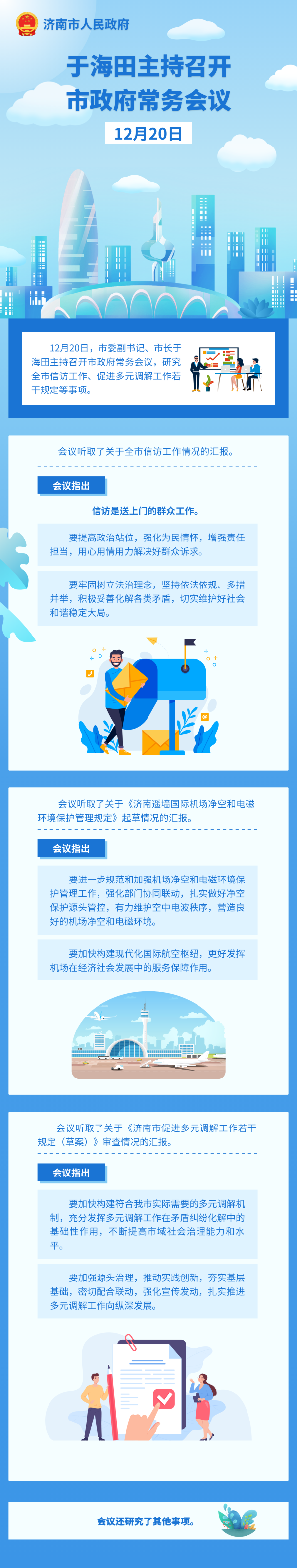 12月20日,市委副书记、市长于海田主持召开市政府常务会议,研究全市信访工作、促进多元调解工作若干规定等事项。