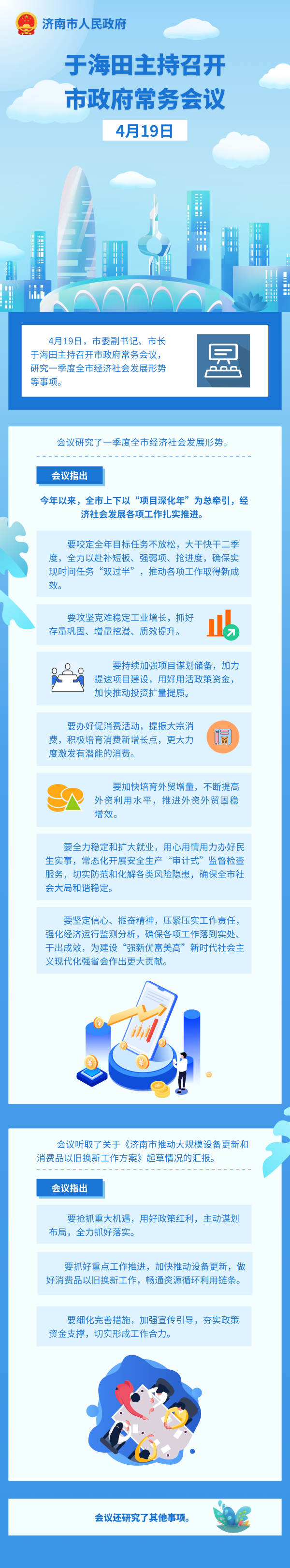 4月19日,市委副书记、市长于海田主持召开市政府常务会议,研究一季度全市经济社会发展形势等事项。