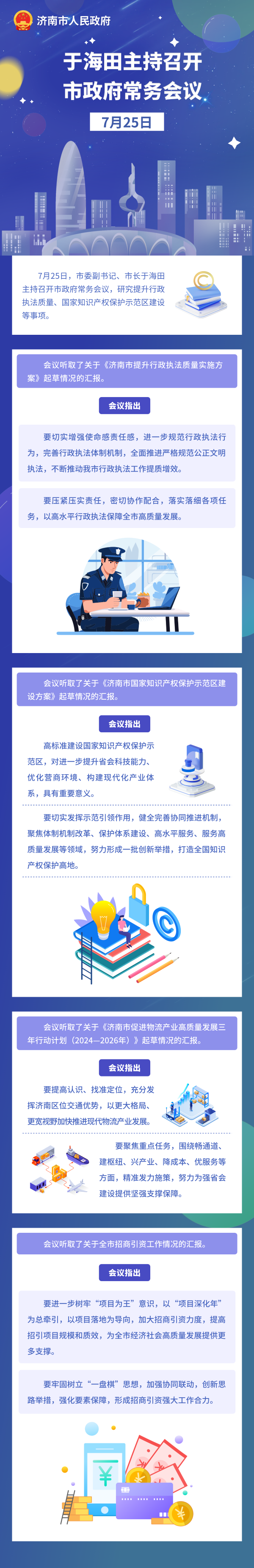 7月25日,市委副书记、市长于海田主持召开市政府常务会议,研究提升行政执法质量、国家知识产权保护示范区建设等事项。