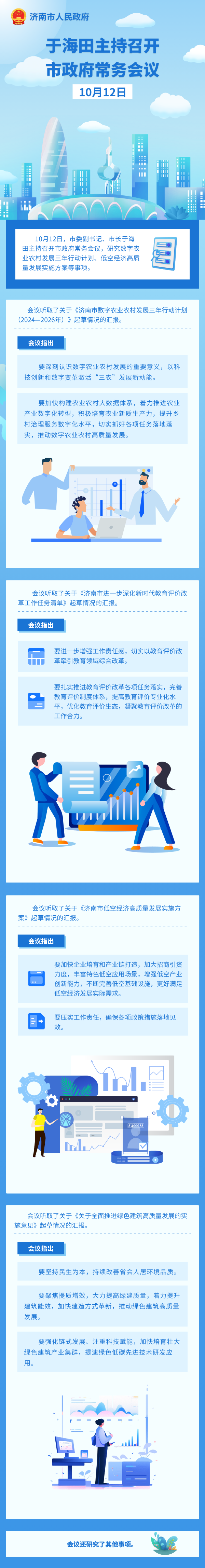 10月12日,市委副书记、市长于海田主持召开市政府常务会议,研究数字农业农村发展三年行动计划、低空经济高质量发展实施方案等事项。