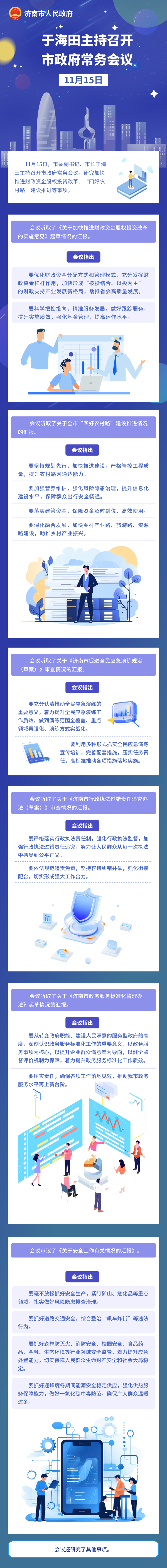11月15日,市委副书记、市长于海田主持召开市政府常务会议,研究加快推进财政资金股权投资改革、“四好农村路”建设推进等事项。