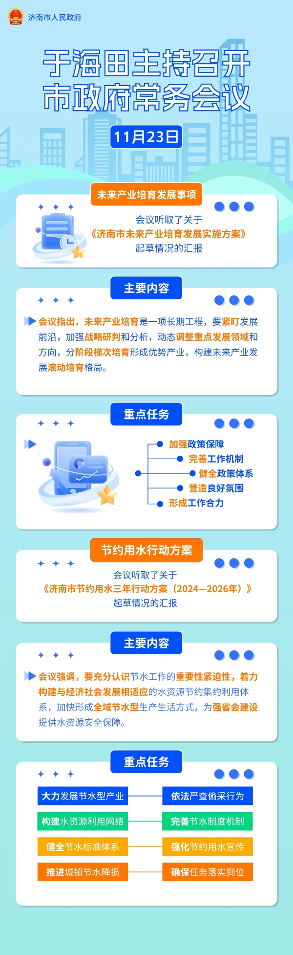 11月23日,市委副书记、市长于海田主持召开市政府常务会议,研究济南未来产业培育发展、节约用水等事项。
